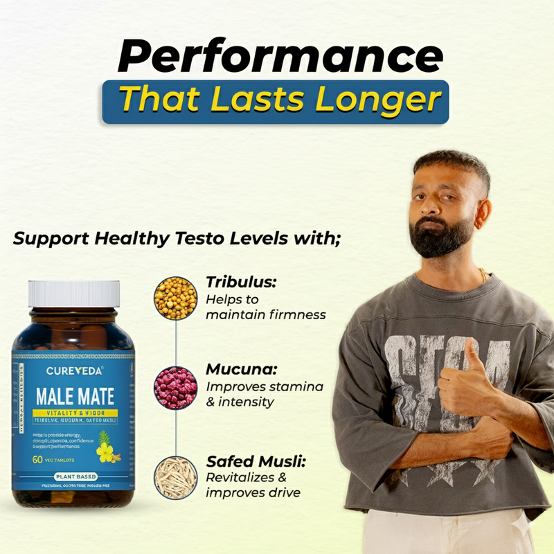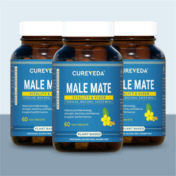 Cureveda Male Mate is an Advanced Testosterone Booster & Male Enhancing Supplement meticulously crafted from a fusion of six potent herbs. This ultra-concentrated, ultrapure high-strength formula is specifically designed to provide comprehensive support for testosterone production, drive, stamina, and overall male health.
